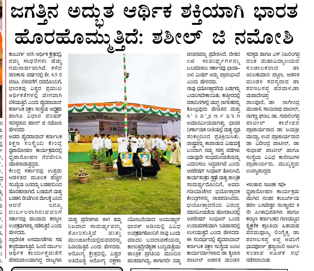 The 79th Independence Day was celebrated with great patriotism and enthusiasm on 15th August 2025 at SNIDSR. The National Flag was hoisted by the President of H.K.E. Society, Shri Shashil G. Namoshi, in the gracious presence of all Governing Council members, faculty, staff, and students.