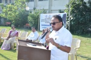 The NSS Unit of our college organized a Shramadana Cleanliness Drive on 16/11/2025 to promote environmental responsibility and maintain a clean and green campus. The program was graced by the presence of HKE Society President, Shri Shashil Namoshi, and the Convener of our college, Dr. Anil Pattan. Staff members and students actively participated in the drive, contributing their efforts towards cleaning the campus surroundings and reinforcing the importance of collective responsibility in maintaining environmental hygiene.